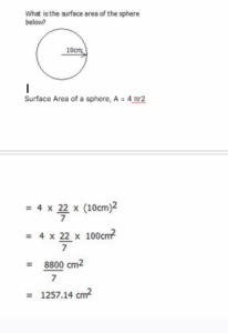 Surface Area of a sphere, A = 4πr²