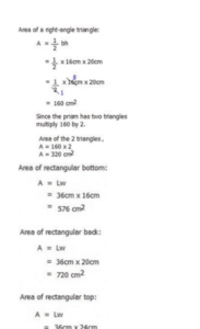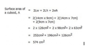 The surface area of a cuboid is A =Â 2Lw + 2Lh+ 2wh