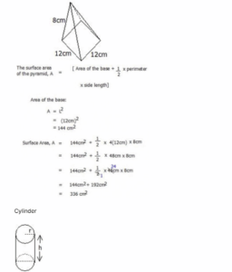 The area of a cylinder, A = Area of the circles + C.S.A.