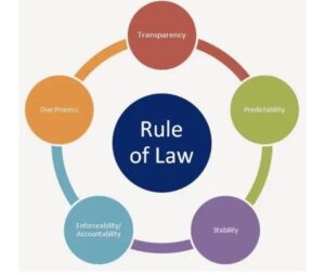 The principle of the rule of law emphasizes or places law over and above all persons in the society, no matter their positions i.e. nobody is above the law. This is to ensure that those who rule do so according to laid down rules and regulations.