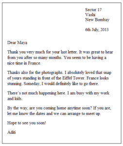 Informal letters are private or personal letters. They are letters we write to people who are very familiar and close to us, such as our parents, friends, classmates, younger relatives, etc.