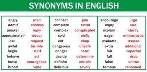 A synonym is a word which very nearly has the same meaning as some other words, and which can replace the word in a sentence, without changing the meaning in the sentence. It helps to avoid monotony in writing.