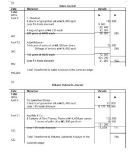 - Returns Outwards Journal or Returns Outwards Day Book: This is used to record goods returned by the business to suppliers.