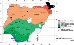 - Rainfall:- Rainfall in Nigeria is unevenly distributed. It generally increases from the coast inland. Along the coast, rain falls for about 8 to 12 months of the year. Further inland, the period of rainfall decreases to less than six months. The shortest periods of rainfall are to the northwest and northeast, where rain falls for less than four months of the year.