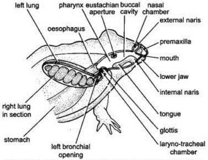 The adult toad respires in three different ways namely: the skin, mouth, and lungs