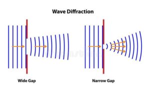 If waves are directed towards a large gap compared with the wavelength of the waves, slightly bent or beams of waves are formed on passing through the gap.