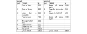 - Profit and Loss account: This is the type of account prepared at the end of the business period, usually a year. By a farmer to know whether his business is making a profit or loss.