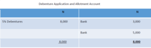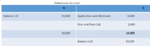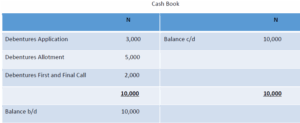 iii. Debentures issued at a discount: this means that the debentures are issued at a price below the nominal value. For example, debentures of N 100 are issued at N 90. Discount = N 100 – N 90 = N 10.