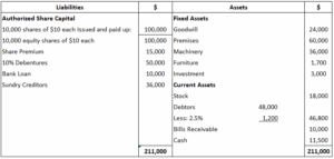 B.K. Limited, registered with a capital of $1,000,000 in equity shares of $10 each, acquired the business of John Brothers. The balance sheet of the firm at the date of acquisition was as shown below.