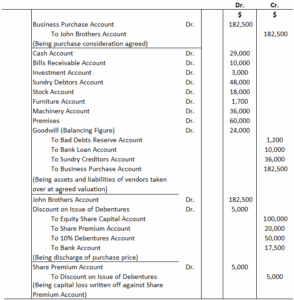 Journal entries in respect of the acquisition.