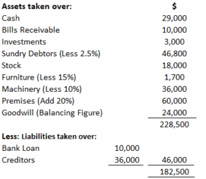 - Andrew Young agreed to take over the business of Ayo. He takes over the assets and liabilities except the cash balance.