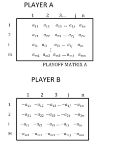 Given two players A and B, if the outcome is positive, then it represents a gain to player A and a loss to player B. But if is negative, then it represents a loss to A but a gain to B